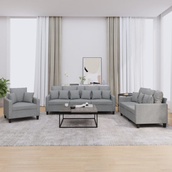 3-CZ. KOMPLET WYPOCZYNKOWY Z PODUSZKAMI JASNOSZARY TKANINA