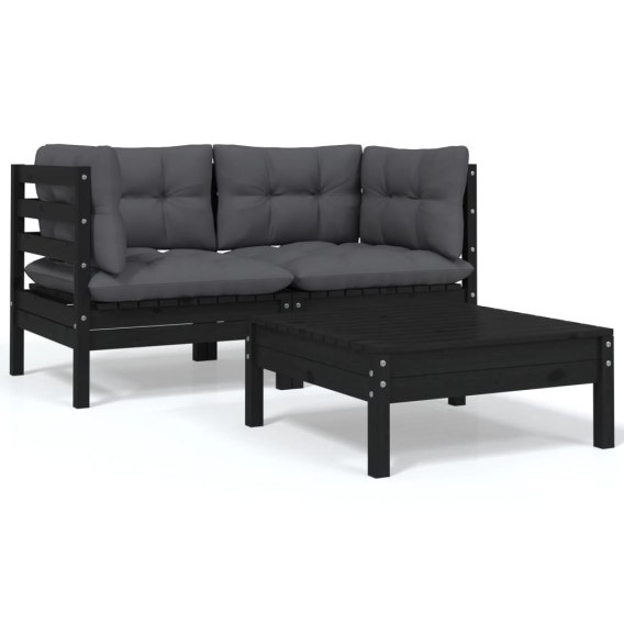 3-CZ. ZESTAW WYPOCZYNKOWY DO OGRODU Z PODUSZKAMI CZARNY