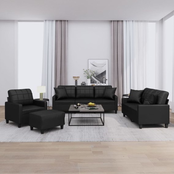 4-CZ. KOMPLET WYPOCZYNKOWY Z PODUSZKAMI CZARNY EKOSKÓRA
