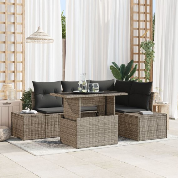 5-CZĘŚCIOWY ZESTAW SOF OGRODOWYCH Z PODUSZKAMI SZARY POLIRATTAN