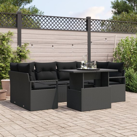 7 CZĘŚCIOWY ZESTAW SOFY OGRODOWEJ Z PODUSZKAMI CZARNY RATTAN POLI 2-OSOBOWA SOFA OGRODOWA Z PODUSZKAMI CZARNY RAT