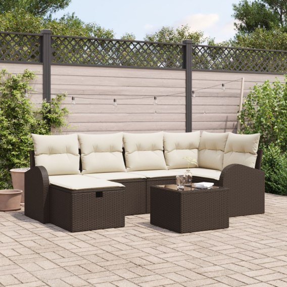 7-CZĘŚCIOWY ZESTAW SOFY OGRODOWEJ Z PODUSZKAMI W BRĄZOWYM POLIRATTANIE 2-OSOBOWA SOFA OGRODOWA Z PRZECHOWYWANIEM