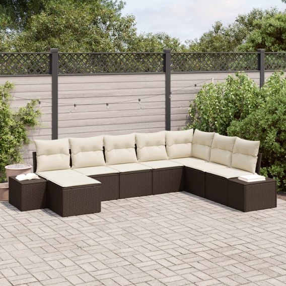 8-ELEMENTOWY ZESTAW SOF OGRODOWYCH Z PODUSZKAMI BRĄZOWY POLIRATTAN