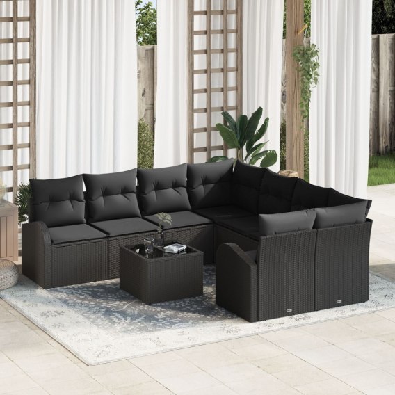 9-CZĘŚCIOWY ZESTAW KANAPOWY DO OGRODU Z PODUSZKAMI CZARNY POLIRATTAN