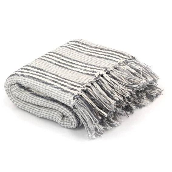 BAWEŁNIANA NARZUTA W PASKI 125X150CM SZARO-BIAŁA