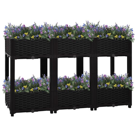 Donicę o 2 poziomach wykonano z polipropylenu, dzięki czemu jest mocna, wytrzymała i odpowiednia do codziennego użytku na zewnątrz. Jest ona wystarczająco głęboka i szeroka, aby pomieścić znaczną ilość ziemi i zapewnia mnóstwo miejsca dla Twoich roślin, warzyw, ziół i kwiatów. Stwórz doskonałe miejsce dla swoich roślin przy pomocy tej eleganckiej donicy do podniesionej rabaty!