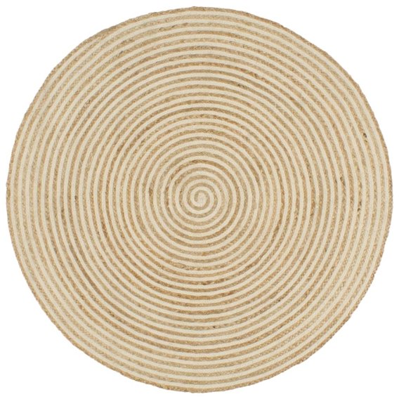 DYWANIK RĘCZNIE WYKONANY Z JUTY SPIRALNY WZÓR BIAŁY 90CM