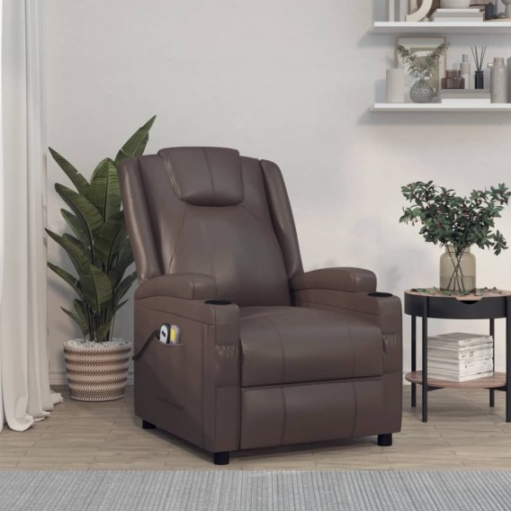 ELEKTRYCZNY FOTEL MASUJĄCY BRĄZOWY SZTUCZNA SKÓRA