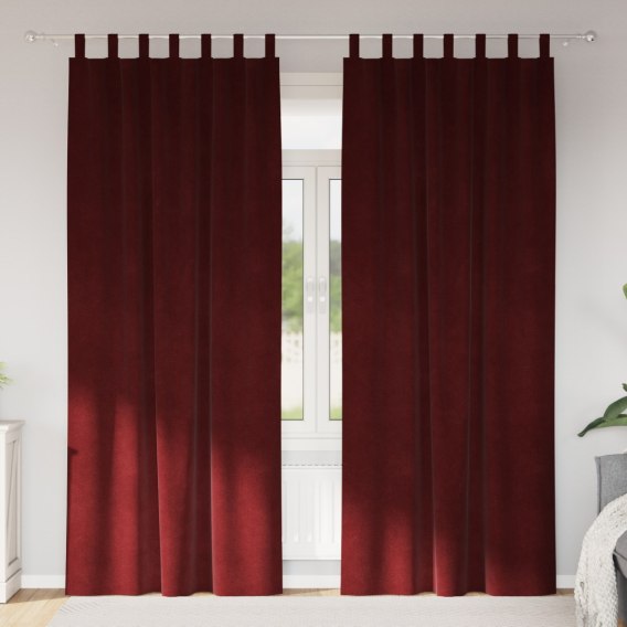 FIRANY ZACIEMNIAJĄCE Z PĘTELKAMI DO ZAWIESZENIA 2 SZTUKI W KOLORZE CZERWONEGO WINA Z WELURU