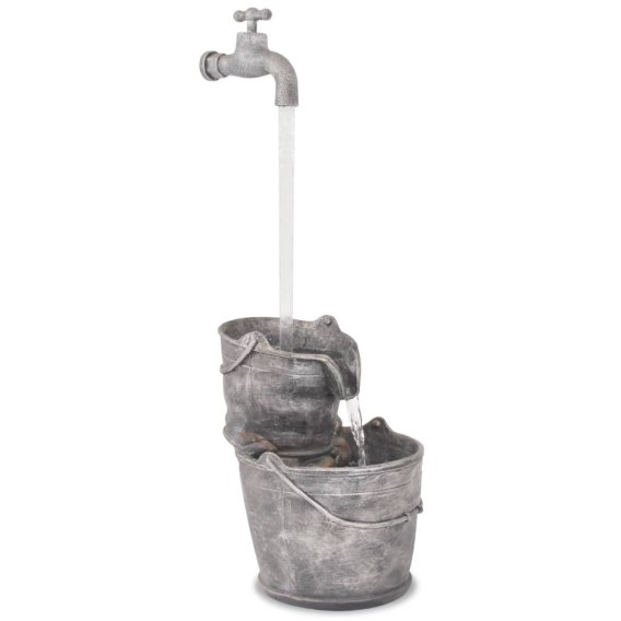 Ta wyjątkowa wolnostojąca fontanna w zabawnym kształcie wygląda zupełnie jak zwykły kran, z płynie woda do dwóch wiader w stylu retro. Będzie ona rewelacyjną ozdobą Twojego wnętrza!