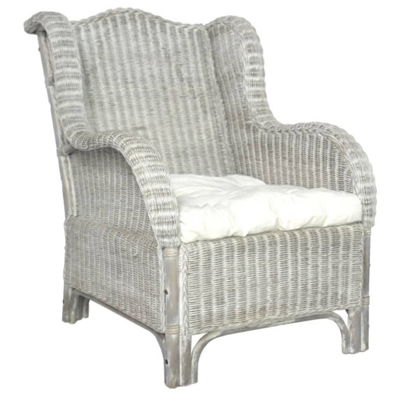 FOTEL Z PODUSZKĄ SZARY NATURALNY RATTAN I LEN