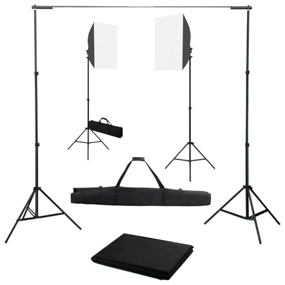 FOTOGRAFICZNY ZESTAW STUDYJNY Z LAMPAMI SOFTBOX I TŁEM