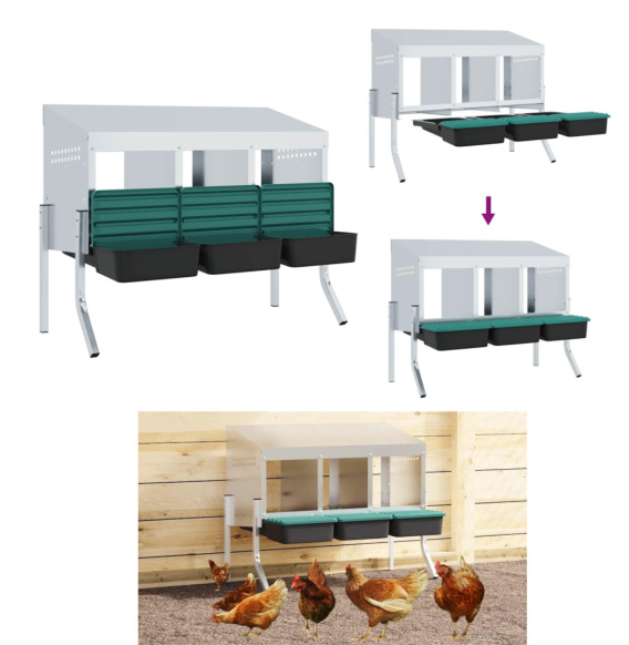 - Wygodne zbieranie jaj: Łatwo podnoszona pokrywa i konstrukcja z możliwością wysuwania umożliwiają bezproblemowe zbieranie jaj, jednocześnie nie zakłócając spokoju kur. Przemyślana konstrukcja sprzyja spokojnemu środowisku dla Twojego stada, dzięki czemu zbieranie jaj jest płynne, bezproblemowe i łatwe w utrzymaniu.