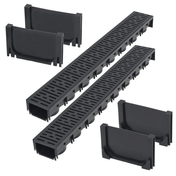 Ten kompletny zestaw składa się z 2 kanałów odpływowych (każdy z plastikową kratką) oraz 4 zatyczek. Stanowi idealne rozwiązanie dla zbierania i odprowadzania nadmiaru wody z podjazdów, podwórek i innych przestrzeni na zewnątrz.
