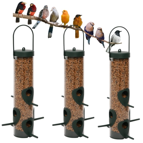 KARMNIK DLA PTAKÓW OGRODOWY ZESTAW 3 SZTUKI 6 OTWORÓW DO ZIARNA