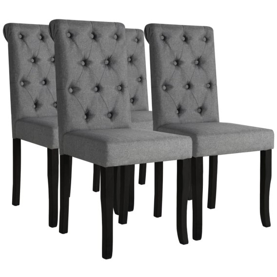 Dzięki miękkiej w dotyku tapicerce z tkaniny i wypełnieniu z pianki krzesła są bardzo wygodne. Ozdobne guziki na oparciu podkreślają ich klasyczny wygląd.
