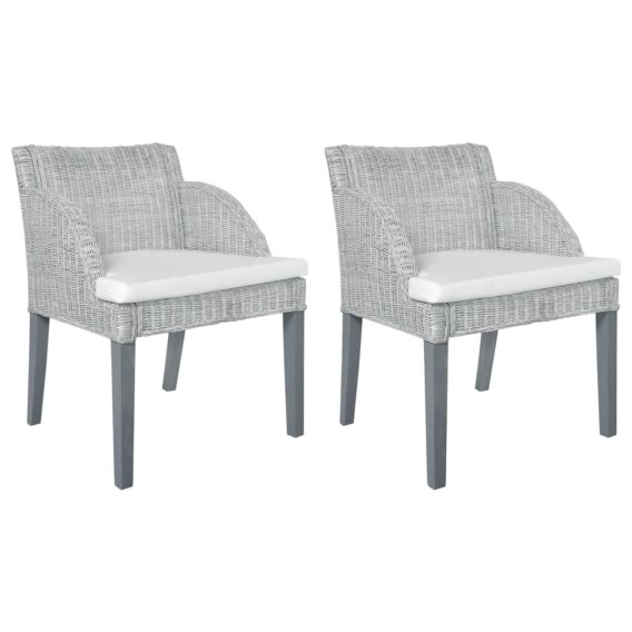 KRZESŁA STOŁOWE Z PODUSZKAMI 2SZT. SZARE NATURALNY RATTAN