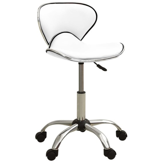 To krzesło obito łatwą w czyszczeniu skórą syntetyczną, oferując najwyższy komfort siedzenia. Jego wysokość można wyregulować oraz obraca się o 360 stopni, spełniając różne potrzeby. Ponadto pięć kółek zapewnia maksymalną mobilność.