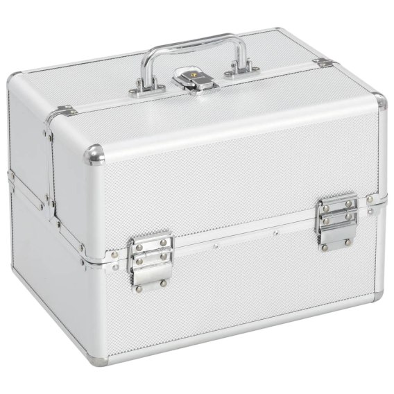 KUFEREK NA KOSMETYKI 22X30X21CM SREBRNY ALUMINIOWY
