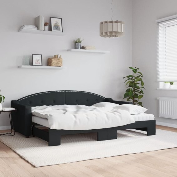 LEŻANKA ROZSUWANA Z MATERACAMI CZARNA 80X200CM TKANINA
