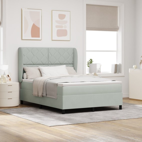 ŁÓŻKO Z MATERACEM W JASNOSZARYM KOLORZE 140X200CM Z AKSAMITU