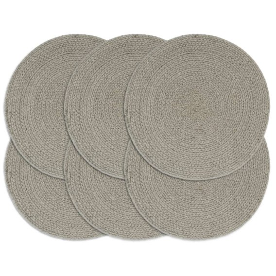MATY NA STÓŁ 6 SZT. GŁADKIE SZARE 38CM OKRĄGŁE BAWEŁNA