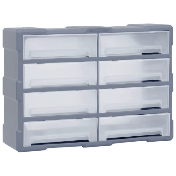 Organizer do przechowywania zawiera 8 dużych szufladek, aby zapewnić przestrzeń do trzymania rzeczy. Dzięki niemu Twoje narzędzia ręczne i akcesoria, takie jak złączki pozostaną uporządkowane i łatwo dostępne. Szafka narzędziowa wykonana jest z odpornego na uderzenia tworzywa sztucznego, które jest trwałe i stabilne. Szuflady z przezroczystego plastiku pozwalają szybko zidentyfikować zawartość. Pudełko jest idealne do przechowywania nakrętek, śrub, wkrętów, gwoździ, mocowań i komponentów.