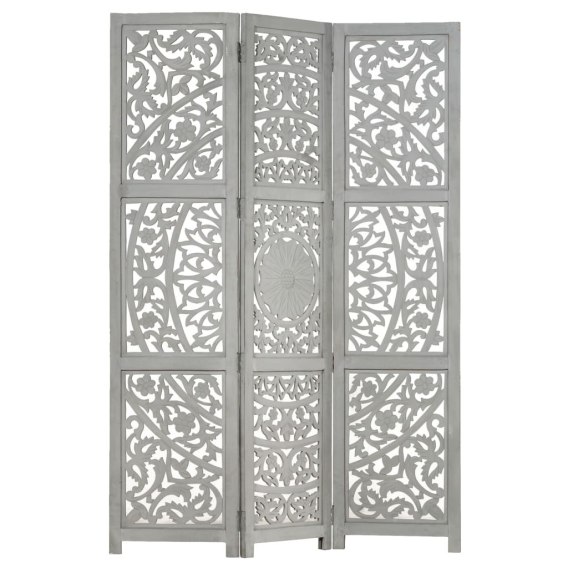 PARAWAN POKOJOWY 3-PANELOWY RZEŹBIONY SZARY 120X165CM DREWNO MANGO