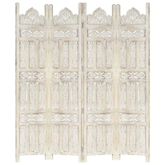 PARAWAN POKOJOWY 4-PANELOWY RZEŹBIONY BIAŁY 160X165CM DREWNO MANGO