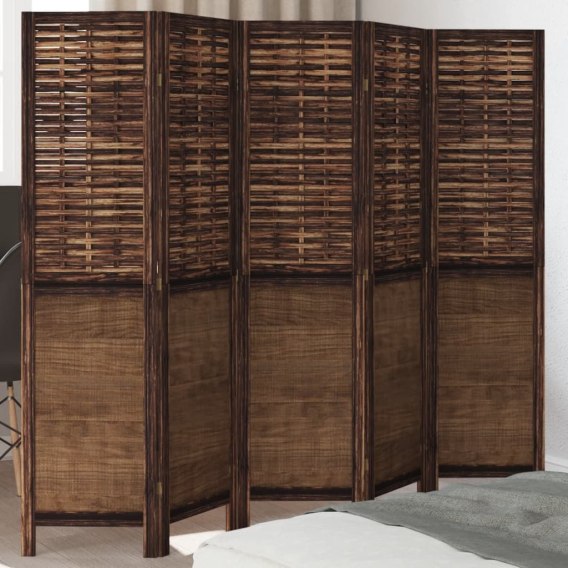 • PARAWAN POKOJOWY 5-PANELOWY CIEMNY BRĄZ LITE DREWNO PAULOWNI