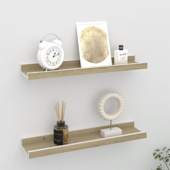 PÓŁKI ŚCIENNE 2 SZT BIEL I DĄB SONOMA 40X9X3CM
