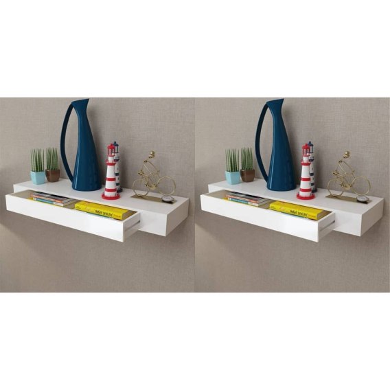 PÓŁKI WISZĄCE Z SZUFLADAMI 2 SZT BIAŁE 80CM