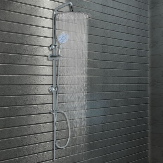 Wygodny komplet składa się z deszczownicy ze stali nierdzewnej i ręcznej słuchawki prysznicowej z litego tworzywa ABS. Regulowaną deszczownicę można dostosować do własnych potrzeb, nawet po zakończeniu instalacji. Łatwy w czyszczeniu system zapobiega osadzaniu się kamienia na dyszach. 60 dysz w deszczownicy i 63 dysze w ręcznej słuchawce zapewnia równomierny strumień i pełne pokrycie wodą. Ponadto specjalna funkcja zapobiega irytującemu skręcaniu się węża. Drążek prysznicowy można zamontować za pomocą śrub i innych elementów montażowych zawartych w dostawie.
