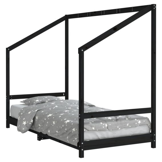 RAMA ŁÓŻKA DZIECIĘCEGO CZARNA 90X190CM DREWNO SOSNOWE