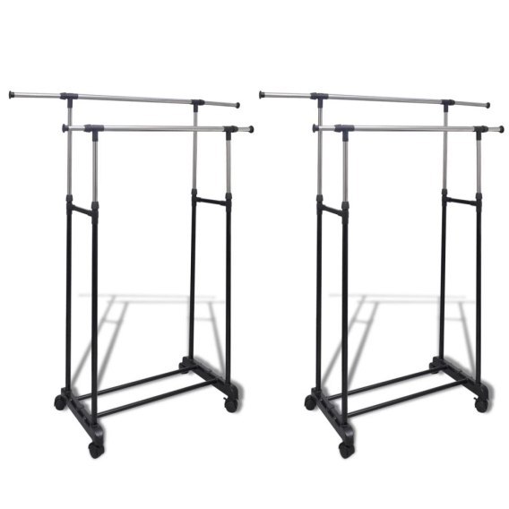Ten uniwersalny zestaw w skład którego wchodzą dwa wieszaki na ubrania sprawdzi się jako praktyczne i przenośne miejsce do przechowywania wiszących ubrań. Wykonany z wysokiej jakości stali nierdzewnej stojak będzie trwały przez wiele lat.