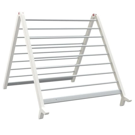 - Regulacja: suszarkę można położyć na płasko na wannie, aby wysuszyć delikatne ubrania, albo oprzeć o ścianę i wykorzystać jako suszarkę stojącą.