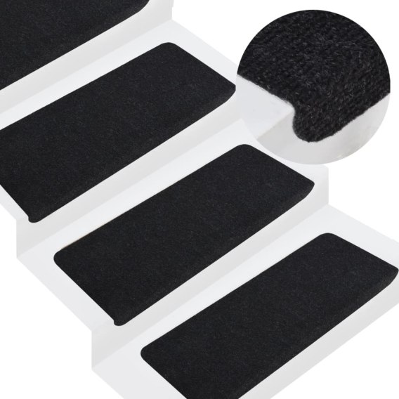 SAMOPRZYLEPNE NAKŁADKI NA SCHODY 15 SZTUK 65X24,5X3,5CM CZARNE