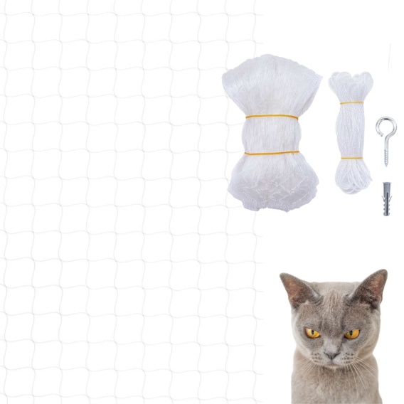- Trwały materiał: Siatka zabezpieczająca dla kota wykonana jest z przezroczystego nylonu, dzięki czemu jest trwała, odporna na rozdarcia, promieniowanie UV i długotrwała.