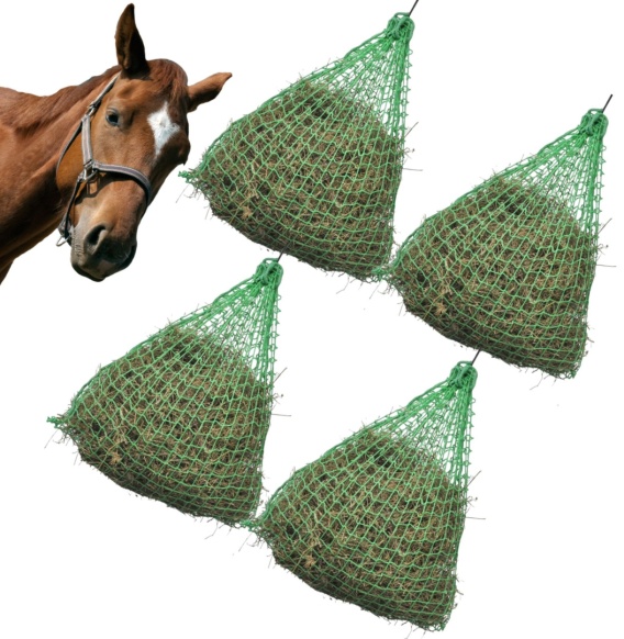 Ten zestaw 4 mocnych siatek na siano jest idealny do karmienia Twoich koni lub kucyków.