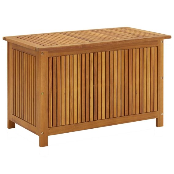Drewnianą skrzynię wykonano z litego drewna akacjowego wykończonego olejem, dzięki czemu jest wytrzymała, niezwykle trwała i odpowiednia do użytku na zewnątrz. Kufer zapewnia sporą przestrzeń na przedmioty domowe lub ogrodowe, aby mieć je poukładane i pod ręką.