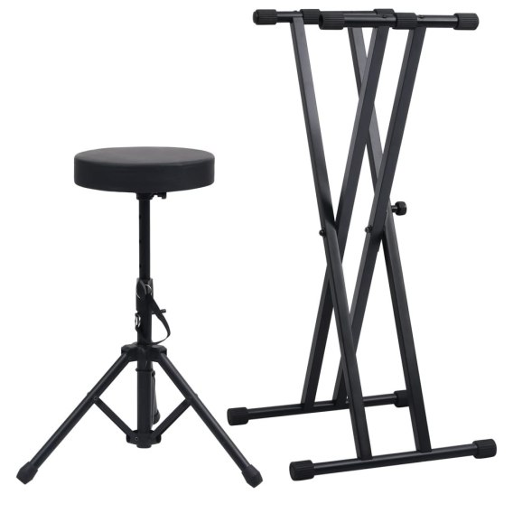 STATYW POD KEYBOARD Z PODWÓJNĄ RAMĄ I STOŁKIEM CZARNY