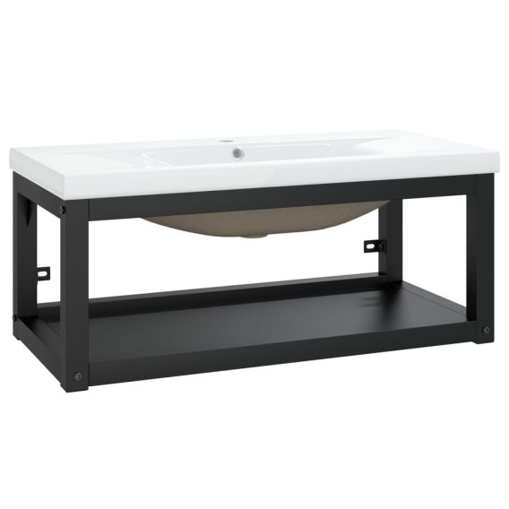 STELAŻ ŁAZIENKOWY ŚCIENNY Z UMYWALKĄ BIAŁĄ 81 CM CZARNY LOFTOWY WISZĄCY