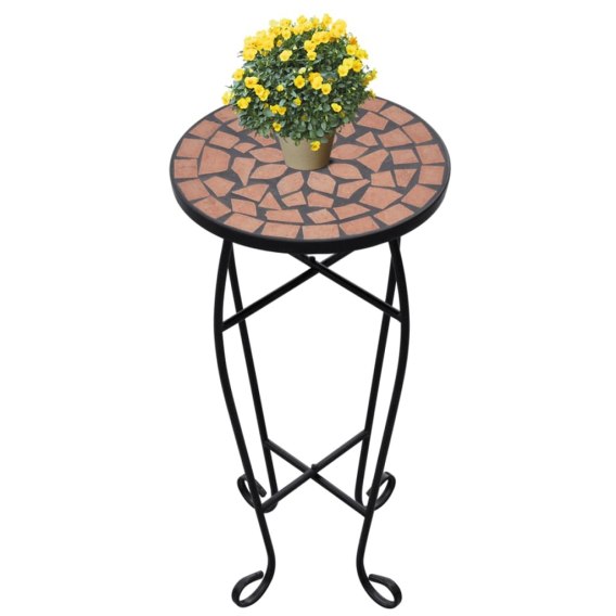 Ten stolik na rośliny ma odporny na warunki pogodowe mozaikowy blat i eleganckie, gięte nogi. Z pewnością przyciągnie wzrok w Twoim ogrodzie, balkonie lub na tarasie itp.