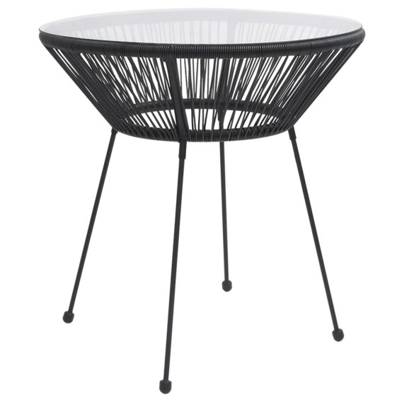STOLIK OGRODOWY CZARNY Ø70X74CM RATTAN I SZKŁO