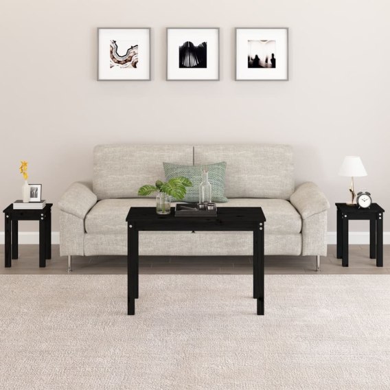 STOLIKI WSUWANE POD SIEBIE 3SZT CZARNE DREWNO SOSNOWE
