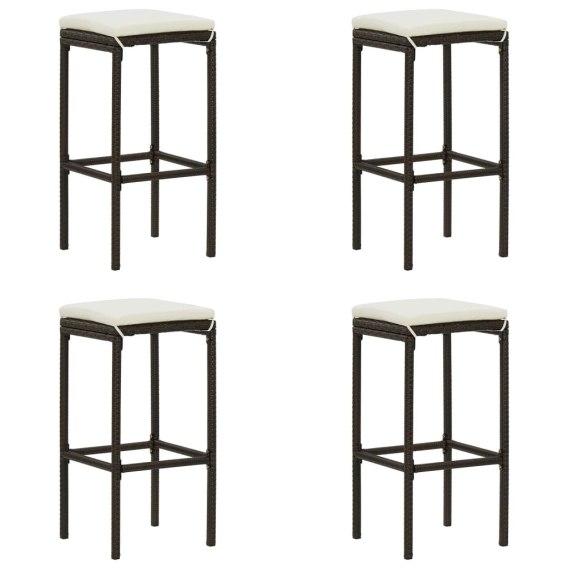 STOŁKI BAROWE Z PODUSZKAMI 4 SZT. BRĄZOWE POLIRATTAN
