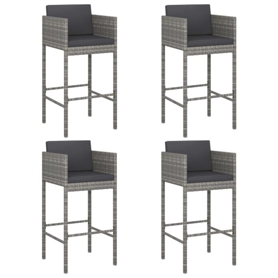 STOŁKI BAROWE Z PODUSZKAMI 4SZT SZARE POLIRATTAN