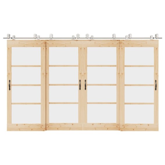 Dzięki temu zestawowi okuć do drzwi przesuwnych możesz łatwo zamontować podwójne szyny, aby drzwi przesuwały się jedne przed drugimi, a drugie za sobą.