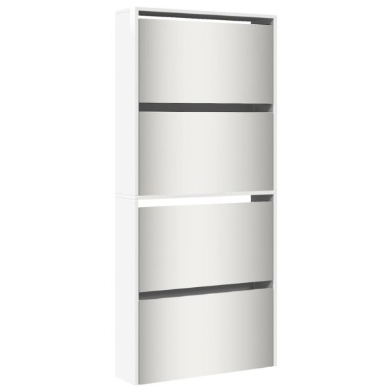 SZAFKA NA BUTY Z LUSTREM 4-POZIOMY BIAŁA POŁYSK 63X17X134CM