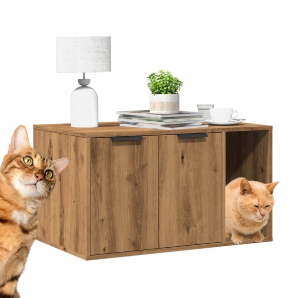 SZAFKA NA KUWETĘ DOMEK DLA KOTA STOLIK UKRYTA KUWETA DĄB ARTISIAN 80X50X45CM